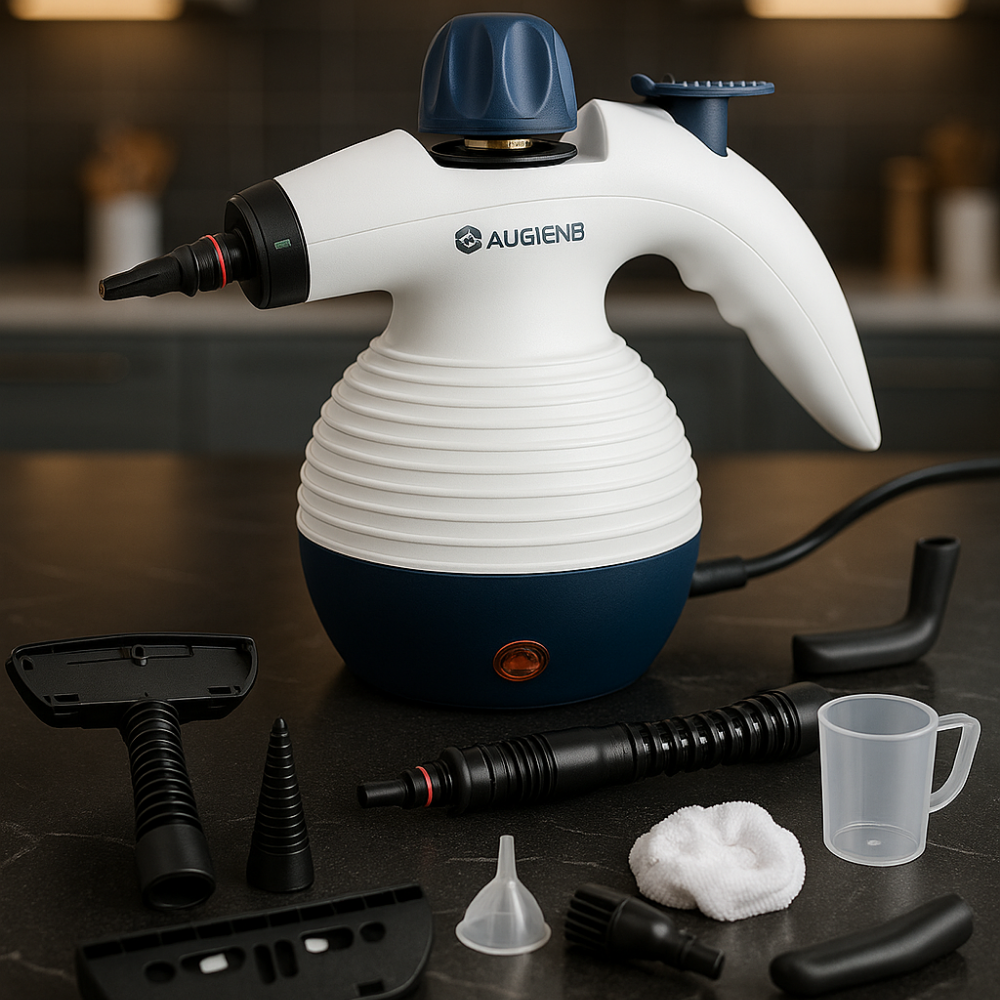 Pode usar em pisos, azulejos, estofados, vidros, pias, janelas, peças de carro, exaustores e muito mais — graças aos 9 acessórios inclusos.