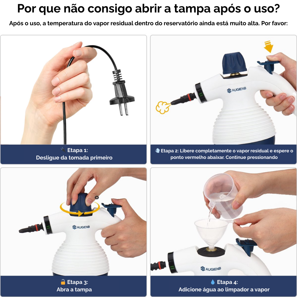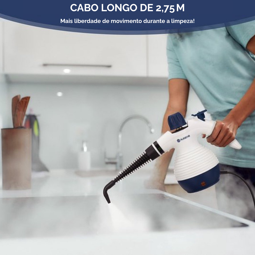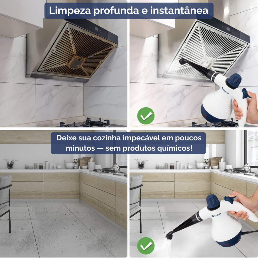 Sim! Utiliza apenas água comum aquecida, oferecendo uma limpeza poderosa e 100% natural.