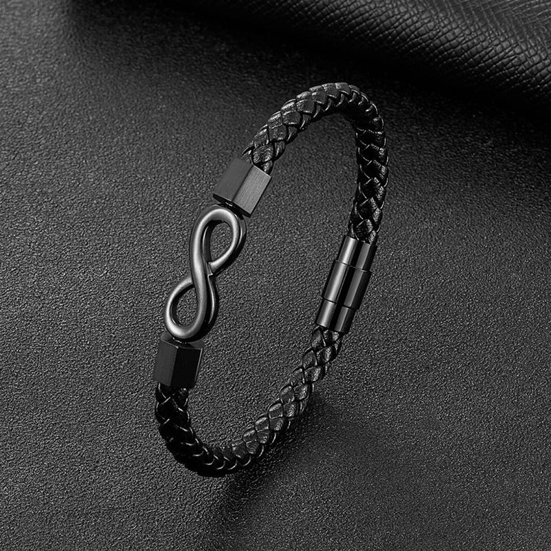 A pulseira Infinito Beloovo representa laços que nunca se quebram. Fabricada em aço inoxidável e couro de alta qualidade, ela combina resistência, elegância e um símbolo poderoso: o infinito, que representa o amor eterno, a amizade verdadeira ou a conexão com algo maior.