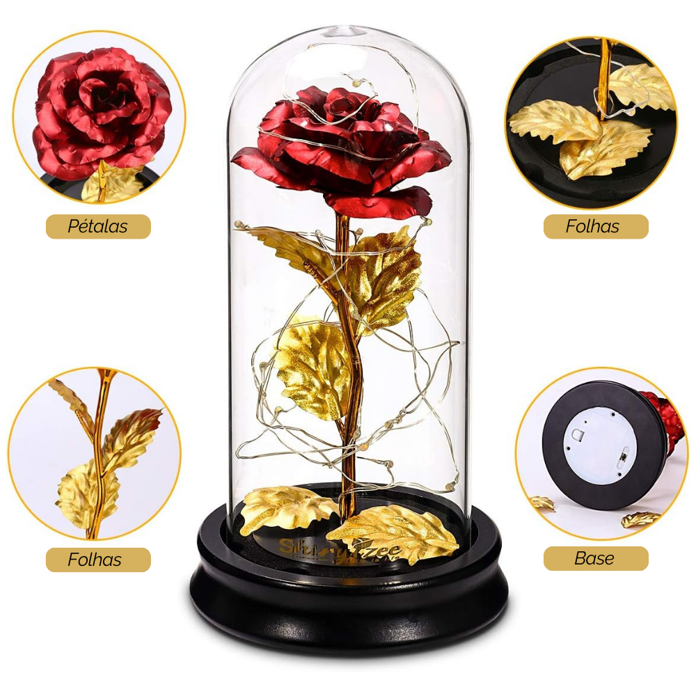 Oferece um presente que fala ao coração. A Rosa Encantada Beloovo, feita à mão com detalhes dourados e luzes LED suaves, é o símbolo perfeito de amor, admiração e eternidade. Ideal para surpreender quem amas com algo verdadeiramente inesquecível.